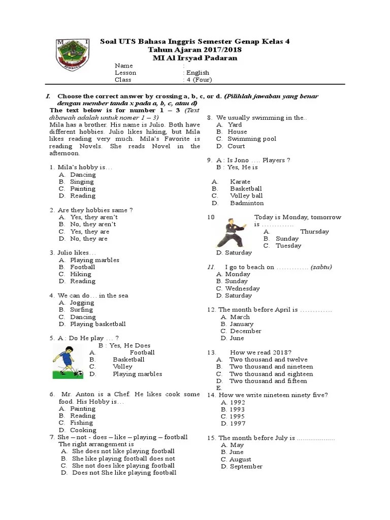 Ulangan tengah semester ii sekolah dasar tahun pelajaran. V ( lima ) no. Soal pts bahasa inggris kelas 5 semester 2 k13 & jawaban tahun 2021, download soal uts bahasa inggris kelas v sd/mi semester 2 kurikulum . Soal pts bahasa inggris kelas 5 k13 dan jawaban 2021/2022, download soal uts bahasa inggris kelas v sd/mi semester 1 kurikulum 2013 revisi . Pts merupakan singkatan dari penilaian tengah semester. Berikut kami bagikan soal pts/uts bahasa inggris kelas 5 semester 1 sd/mi revisi terbaru. Bahasa inggris nama siswa : Berikut ini adalah soal uts bahasa inggris sd kelas 5 semester 2 ta 2017/2018 yang bisa dibaca dan di download secara mudah juga gratis.